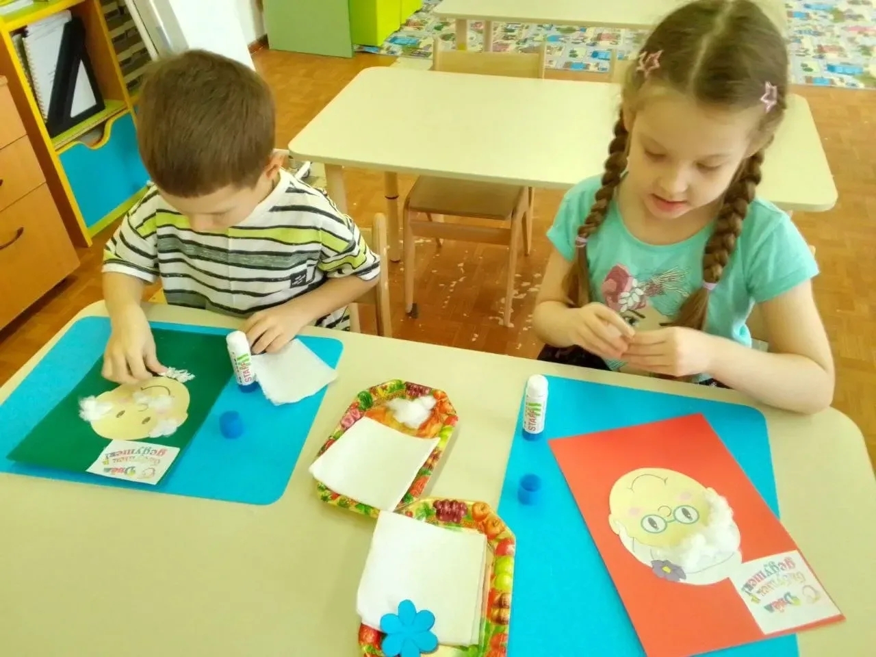 Дети с интересом создавали красивые подарки, мастерили яркие аппликации , старательно раскрашивали заготовки А воспитатели помогали ребятам воплотить их творческие идеи и создать по-настоящему душевные подарки для бабушек и дедушек
