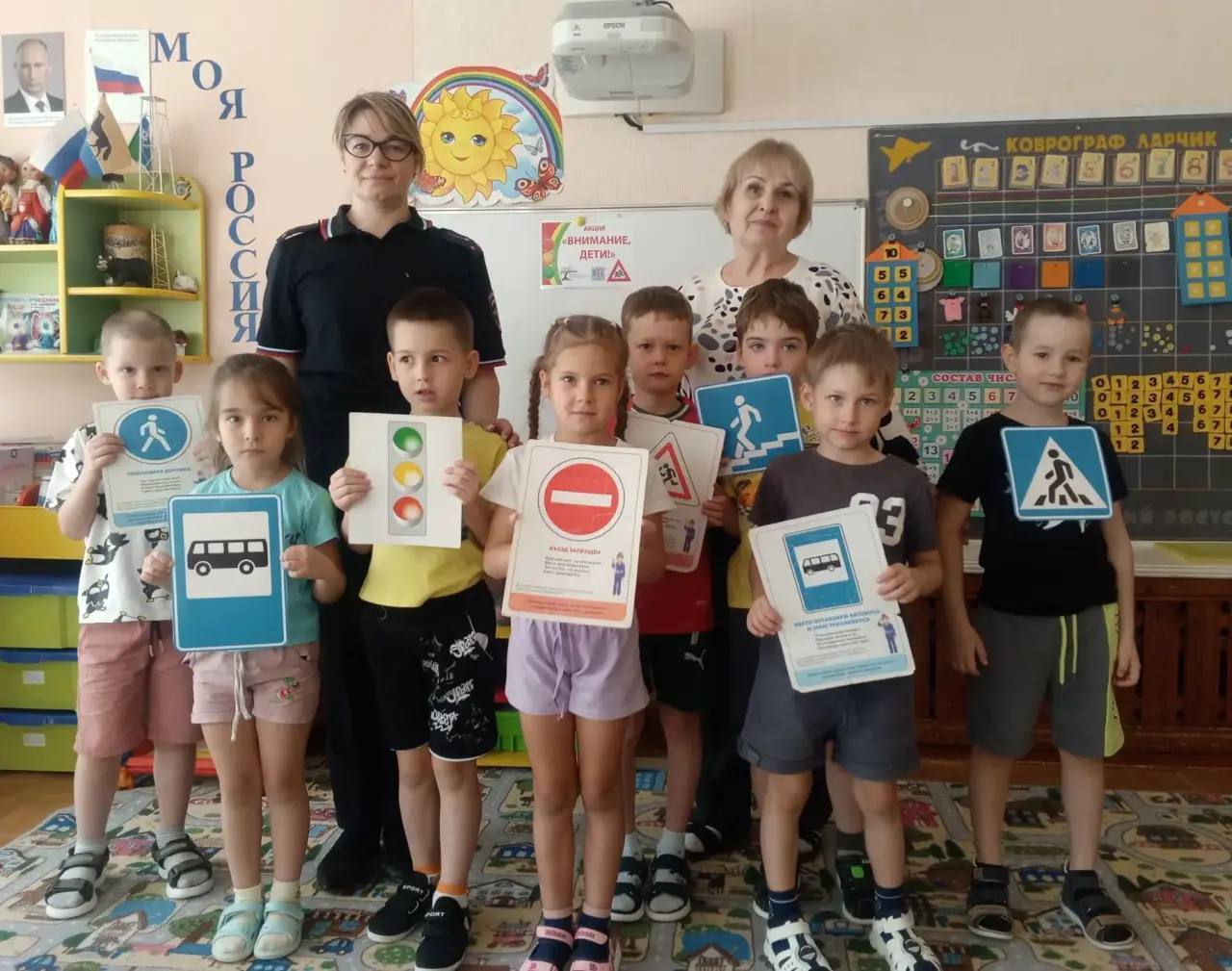 С воспитанниками старшего дошкольного возраста состоялась встреча с инспектором группы пропаганды безопасности дорожного движения Госавтоинспекции Сургута. Инспектор побеседовал с детьми о необходимости соблюдения правил дорожного движения, использования детского кресла и бустера в автомобиле, световозвращателей на одежде в темное время суток, показал обучающие мультфильмы. Воспитанники внимательно слушали, отвечали на вопросы и приводили примеры соблюдения безопасности из личного опыта. Такие встречи способствуют воспитанию у детей осознанного использования знаний правил ПДД в повседневной жизни и профилактике их нарушений.