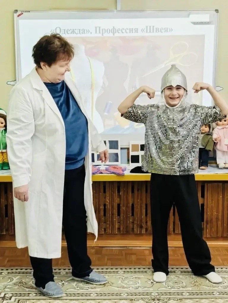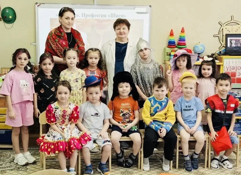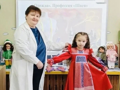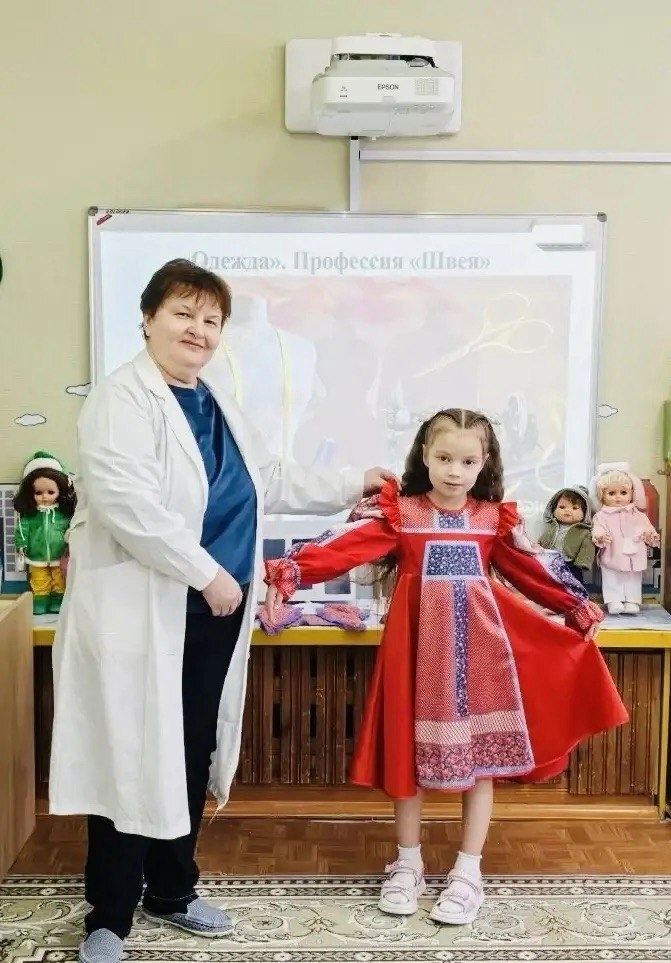 Воспитанники разновозрастной группы компенсирующей направленности "Веснушка" посетили кабинет швеи. Любовь Федоровна показала детям рабочее место, инструменты для шитья и ремонта одежды, рассказала о профессии швеи, требованиях к профессиональным умениям. Дети с удовольствием приняли участие в демонстрации костюмов (национальных, театрализованных). Для закрепления знаний детей по изученной лексической теме педагоги и родители организовали в группе выставку "Одежда для кукол"